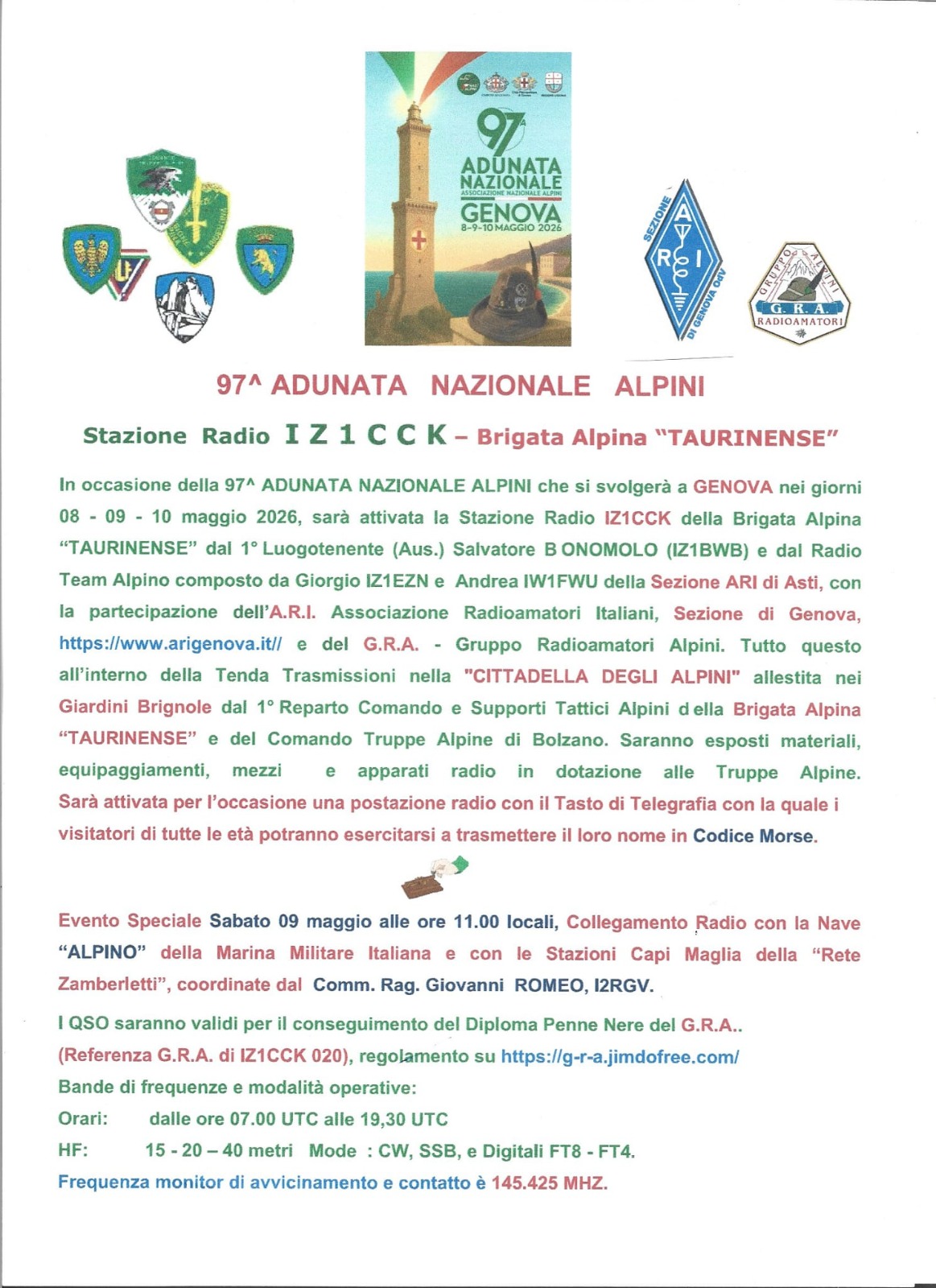 Benvenuti sul sito dell'Associazione Radioamatori Italiani Sezione di Genova OdV IQ1GE